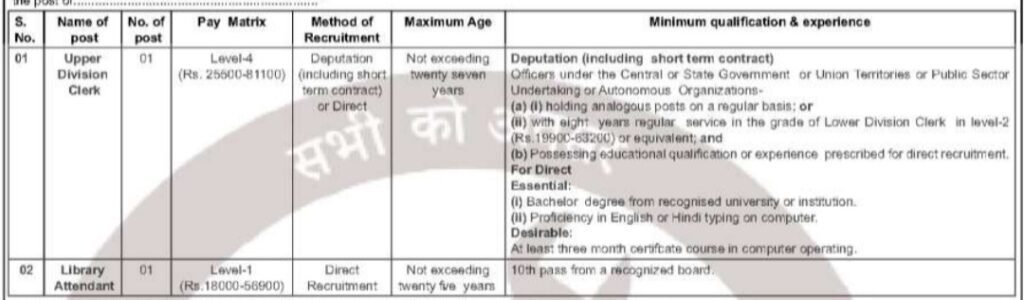 పోస్ట్ పేరు :: అప్పర్ డివిజన్ క్లార్క్ & లైబ్రరీ అటెండంట్ పోస్టుకు ఉన్నాయి.