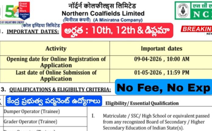 కరెన్సీ నోట్ ప్రెస్, సెక్యూరిటీ ప్రివైడింగ్ అండ్ మైనింగ్ కార్పొరేషన్ ఆఫ్ ఇండీడ్ (SPMCIL) లో 534 వెల్ఫేర్ ఆఫీసర్, సేఫ్టీ ఆఫీసర్, సూపర్వైజర్, సెక్రటేరియల్ అసిస్టెంట్, ఆర్టిస్ట్, జూనియర్ ఆఫీస్ అసిస్టెంట్ & జూనియర్ టెక్నీషియన్ ఉద్యోగుల కోసం షార్ట్ నోటిఫికేషన్ విడుదల చేశారు. ఈ ఉద్యోగాలు మొత్తం 534 ఉన్నాయి. కేంద్ర ప్రభుత్వ పర్మనెంట్ ఉద్యోగాలు. ఈ నోటిఫికేషన్లు టెన్త్, ఐటిఐ, డిప్లమా, ఏదైనా డిగ్రీ & BE/B.Tech/B.Sc/B.Sc (ఇంజనీరింగ్ కోర్సు-4 సంవత్సరాలు) చేసిన ప్రతి ఒక్కరు కూడా అప్లై చేసుకోవచ్చు. 18 సంవత్సరాల నుంచి 30 సంవత్సరాల మధ్యలో వయసు కలిగి ఉండాలి. ఉద్యోగులకు సెలెక్ట్ అయితే మధ్యలో రూ.29,740-1,03,000/- నెల జీతం ఇస్తారు. దరఖాస్తుదారులు కంపెనీ వెబ్సైట్ https://cnpnashik.spmcil.com/ ను సందర్శించి, ఆన్లైన్ దరఖాస్తు ఫారమ్ను పూరించడానికి ఉన్న లింక్ను తెరవాలి. “APPLY ONLINE” అనే ఆప్షన్పై క్లిక్ చేయగా, ఒక కొత్త స్క్రీన్ తెరుచుకుంటుంది. దరఖాస్తుదారులు 20.04.2026 నుండి 19.05.2026 వరకు మాత్రమే ఆన్లైన్లో దరఖాస్తు చేసుకోవచ్చు.