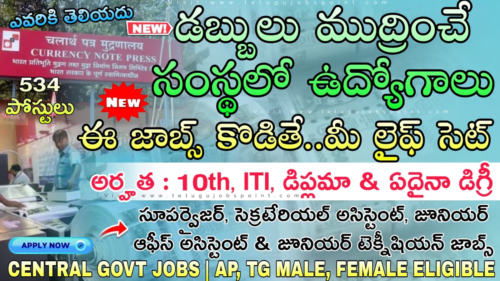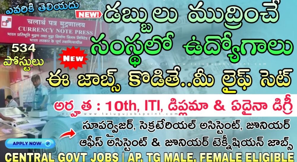 Supervisor Jobs : కేవలం 10th, ITI డిప్లమా & Any డిగ్రీ అర్హతతో నోట్లు ముద్రించే సంస్థ మరో కొత్త నోటిఫికేషన్ వచ్చేసింది | Currency Note Press Recruitment 2026 Apply Now