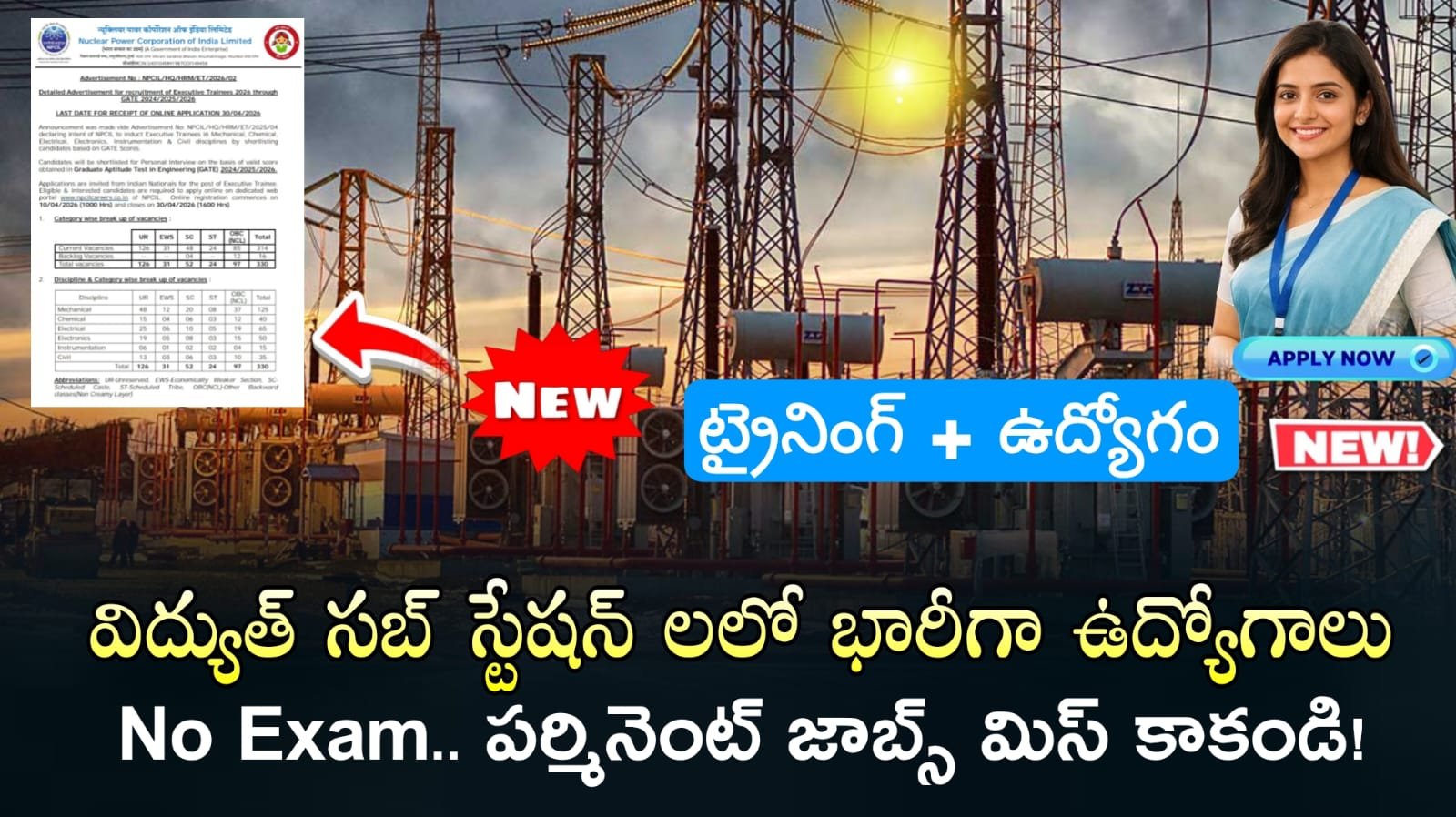 No Exam, విద్యుత్ సబ్ స్టేషన్ లో ఎగ్జిక్యూటివ్ ట్రైనింగ్ నోటిఫికేషన్ వచ్చేసింది | NPCIL Notification 2026 Apply Now