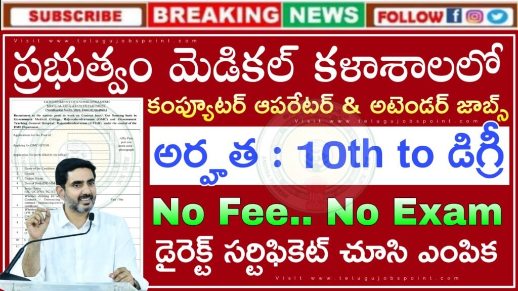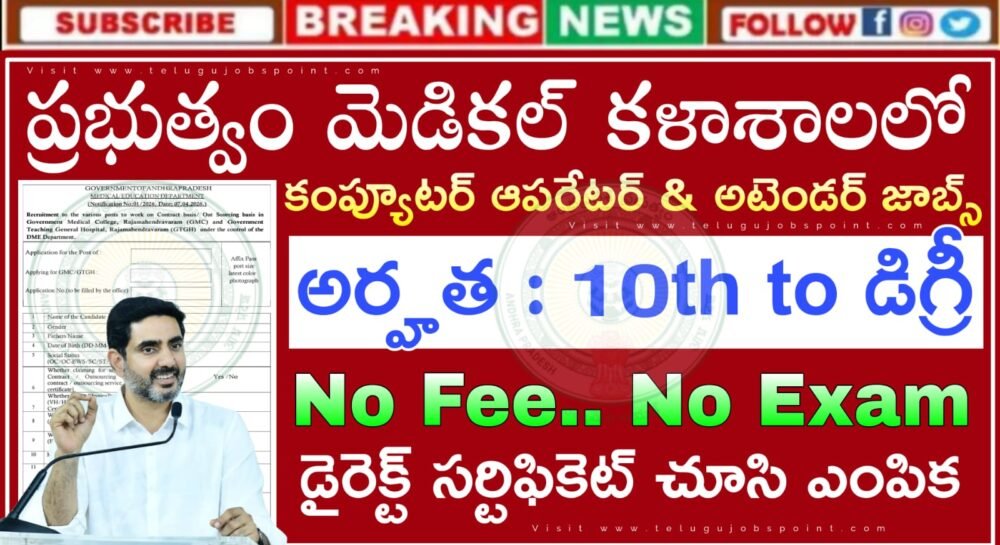 Latest Jobs : రాత పరీక్ష లేకుండా 10th అర్హతతో ప్రభుత్వ మెడికల్ కళాశాలలో కంప్యూటర్ ఆపరేటర్ & అటెండర్ ఉద్యోగ నోటిఫికేసన్ వచ్చేసింది| AP Government Medical CollegeRecruitment 2026 Apply Now