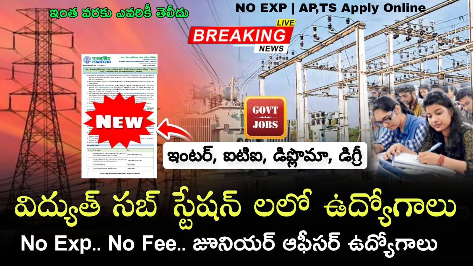 Job Alert : కొత్తగా విద్యుత్ సబ్ స్టేషన్ లో జూనియర్ ఆఫీసర్ నోటిఫికేషన్ వచ్చేసింది | POWERGRID Non Executive Recruitment 2026 Apply Now