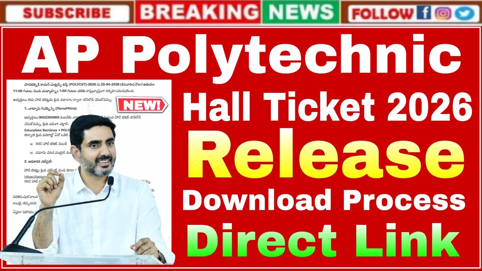 AP Polytechnic Hall Ticket Release 2026 | AP పాలిటెక్నిక్ హాల్ టికెట్లు రోజున ఉదయం 11:00 గంటల విడుదల