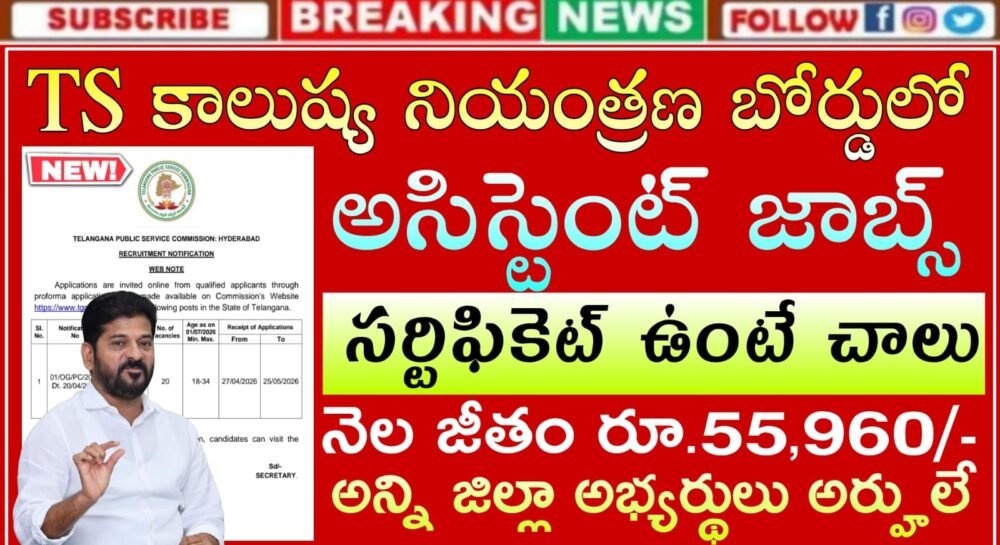 TGPSC Jobs : తెలంగాణ కాలుష్య నియంత్రణ బోర్డులో అసిస్టెంట్ సైంటిస్ట్ఉద్యోగ నోటిఫికేషన్ వచ్చేసింది | Telangana Pollution Control Board Recruitment 2026 Apply Now