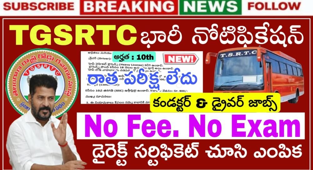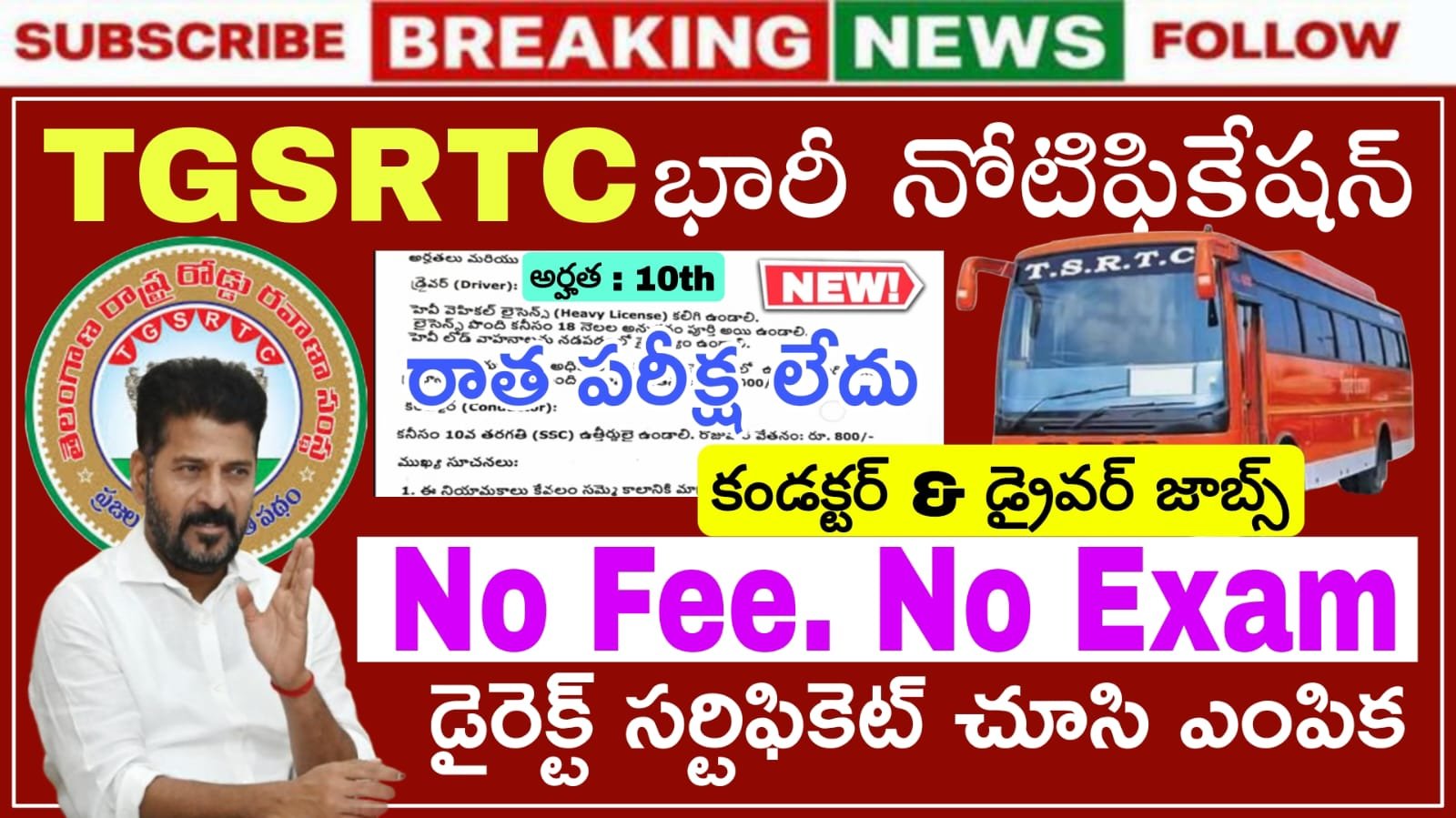 TGSRTC Jobs : రాత పరీక్ష లేకుండా RTCలో నోటిఫికేషన్ వచ్చేసింది | TGSRTC Driver & Conductor Job Recruitment 2026 Apply Now