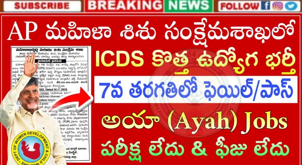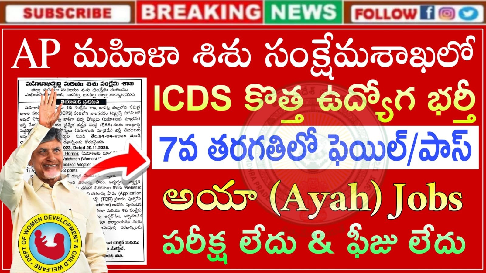 7th అర్హతతో రాత పరీక్ష లేకుండా AP మహిళా శిశు సంక్షేమ శాఖలో ఆయాజాబ్స్ వచ్చేశాయి | AP ICPS Helper cum Night Watchmen & Ayah Job Notification 2026 Apply Now