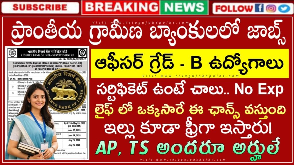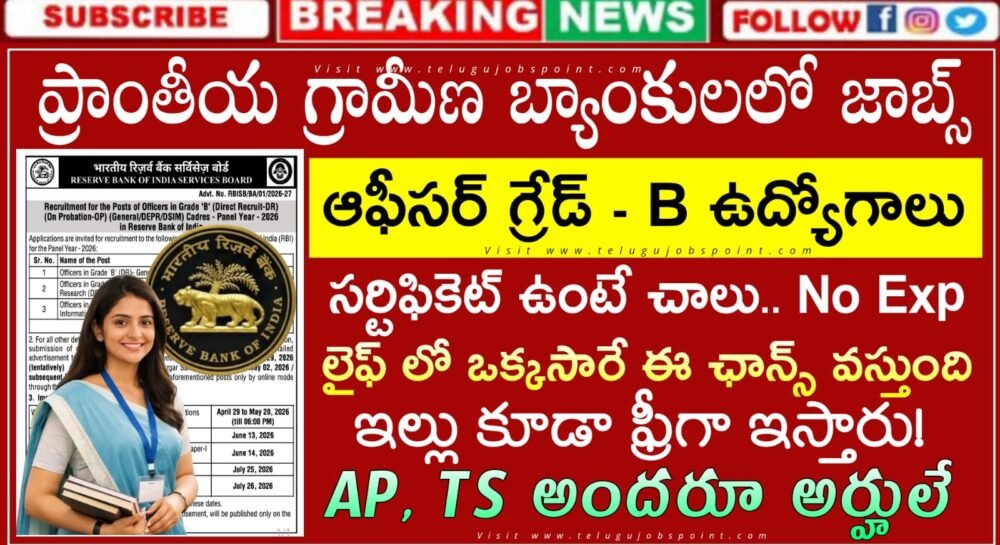 RBI Jobs : ప్రాంతీయ గ్రామీణ బ్యాంకులలో ఆఫీసర్ గ్రేడ్ బి నోటిఫికేషన్ వచ్చేసింది | RBI Officers in Grade ‘B’Jobs Notification 2026 Salary, eligibility, apply links