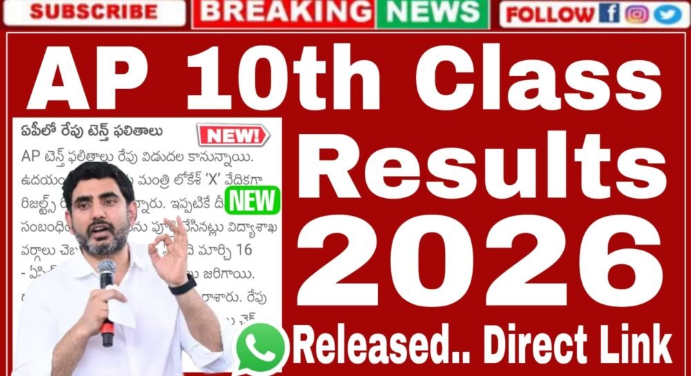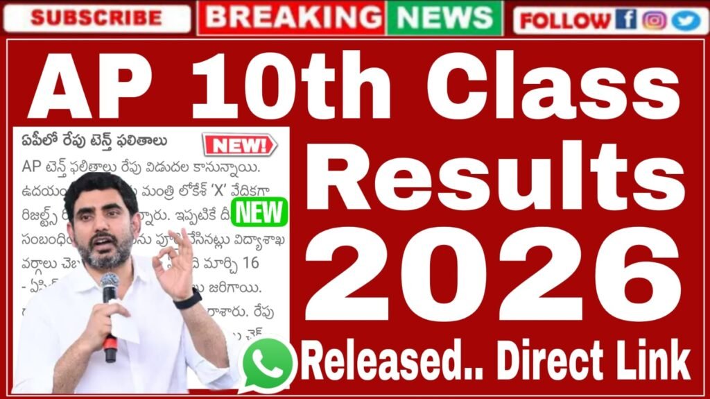 AP SSC 10th Class Results 2026 Released Tomorrow Morning 11:00 Direct Link : ఆంధ్రప్రదేశ్ పదవ తరగతి (SSC) పబ్లిక్ పరీక్షల ఫలితాలు కోసం ఎదురుచూస్తున్న లక్షలాదిమంది విద్యార్థులకు ఆంధ్రప్రదేశ్ రాష్ట్ర విద్యాశాఖ తీపిక కబురు తెలిపారు. ఫలితాల విడుదలకు సంబంధించి ఆంధ్రప్రదేశ్ విద్యాశాఖ మంత్రి నారా లోకేష్ గారు అధికారికంగా ‘X’ లో వేదికగా రిజల్ట్స్ రిలీజ్ చేస్తున్నారు.