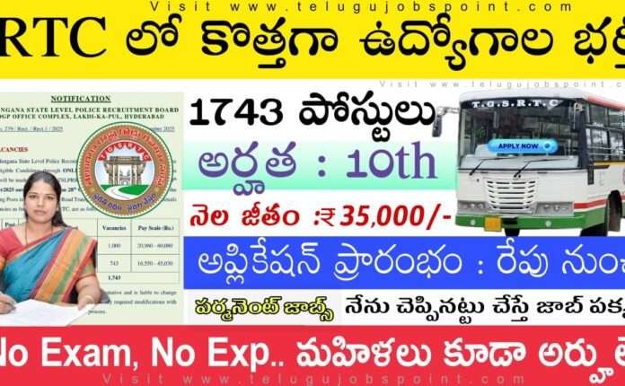RTC JOBS : 10th అర్హతతో 1743 ఉద్యోగుల నోటిఫికేషన్ విడుదల TGSRTC Notification 2025 Out for Telangana RTC 1743 Driver & Shramik vacancy apply online starting from 08 October : నిరుద్యోగులకు శుభవార్త, …