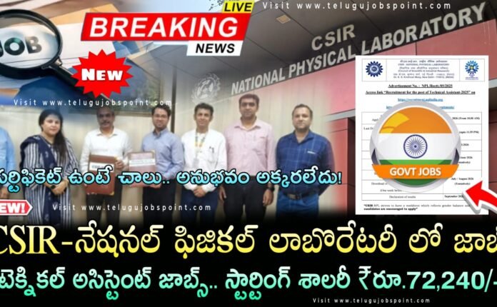 CSIR NPL Jobs : కొత్త గా నేషనల్ ఫిజికల్ లాబొరేటరీలో టెక్నికల్ అసిస్టెంట్ నోటిఫికేషన్ వచ్చేసింది | Latest CSIR NPL Recruitment 2026 Apply Now Latest CSIR NPL Recruitment 2026 Latest Technical Assistant Job …